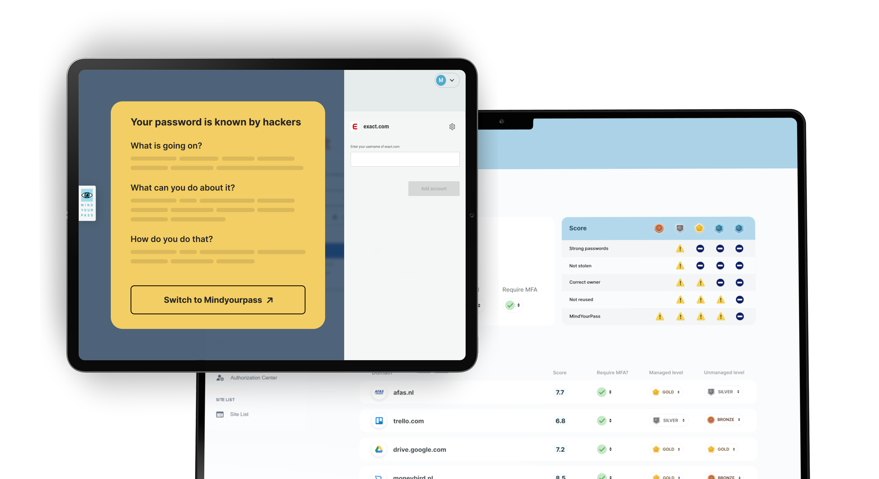 Nee. Je bepaalt als organisatie zelf of en waar je MindYourPass afdwingt, en welke wachtwoordeisen je hanteert. Liever niet afdwingen? Dan kun je ook alleen waarschuwingen instellen.